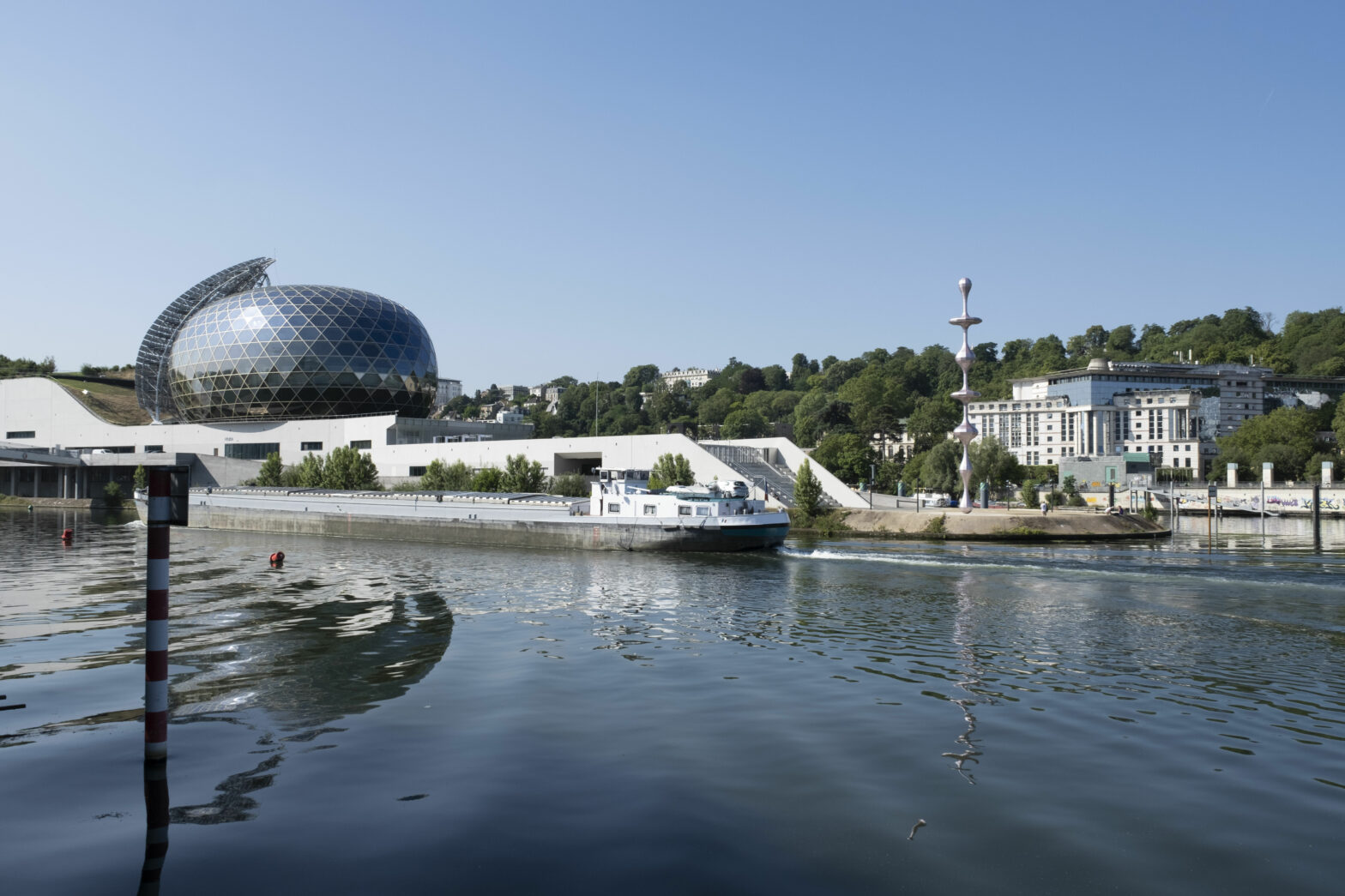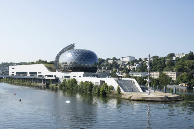 Ether sur la pointe aval de l?Ile Seguin a Boulogne-Billancourt juillet 2023. Au pied de La Seine Musicale avec laquelle elle entre en resonance l??uvre monumentale du Japonais Kohei NAWA vient parachever la mutation de cet espace et porter un plaidoyer universel pour l?egalite.